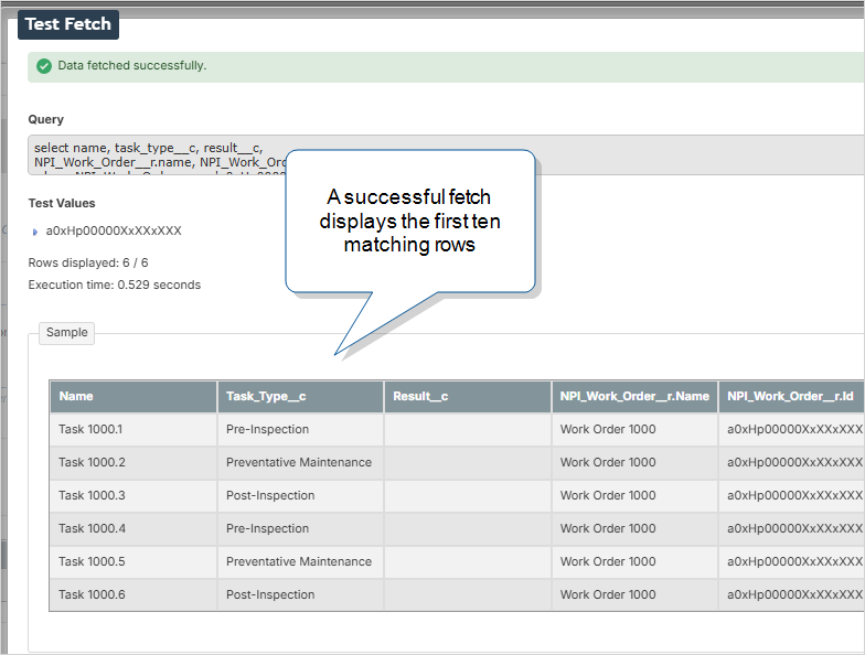 5. Complete a Test Fetch to ensure that query returns the expected results.