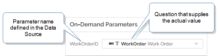 A parameter question is any question defined in your form that's also used to provide values to an On-Demand Data Source or a Webhook query..You can use any of these single-answer question types for parameter questions: