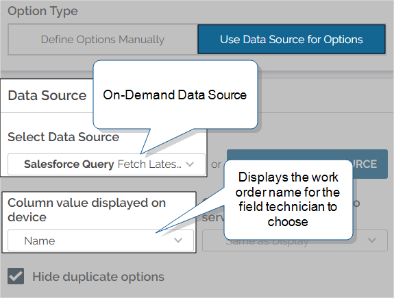 Info:The sectionOn-Demand Data Sources Overview: Data fetch behavior and rules includes information about question types you can use and the number of unique fetches per form.